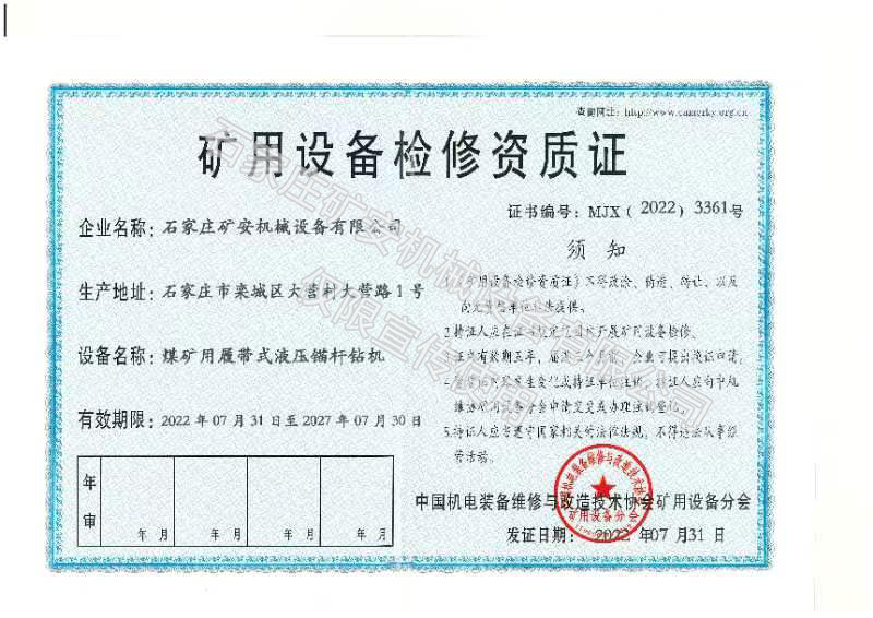 石家莊礦安機械設(shè)備有限公司成立于2011年3月,公司位于風景優(yōu)美、科技發(fā)達、交通便利的石家莊市欒城區(qū),是一家專注生產(chǎn)煤礦井下支護機具(錨桿鉆機)和安全鉆機(防突,架柱等)及氣動隔膜泵等礦用機械設(shè)備的********,是國內(nèi)煤礦機械裝備的生產(chǎn)商和服務(wù)商,根據(jù)用戶需求提供井下適用的鉆機施工解決方案。公司致力于打造研發(fā)、制造、銷售、服務(wù)為一體的現(xiàn)代化企業(yè),全心全意為煤礦生產(chǎn)保駕護航。 ? 公司建有裝配車間、機加車間和調(diào)試車間,擁有嚴格的質(zhì)量控制體系、先進的產(chǎn)品開發(fā)系統(tǒng)、完善的試驗檢測設(shè)施、良好的售后服務(wù)保障。先后與中煤科工集團沈陽研究院、西安研究院、太原理工大學(xué)、燕山大學(xué)等知名院校建立了緊密的合作關(guān)系。 ? 公司產(chǎn)品主要銷往山西、陜西、山東、內(nèi)蒙古、黑龍江、云南、貴州等七十多個礦區(qū)和地方煤礦,擁有一支成熟的售后技術(shù)團隊,并且和中煤集團、華電煤業(yè)集團、華潤煤業(yè)集團、潞安集團、山西焦煤、淮北礦業(yè)等國內(nèi)知名企業(yè)達成長期合作關(guān)系。 ? 公司始終秉持“讓煤礦生產(chǎn)更安全”的發(fā)展使命,力求誠信與創(chuàng)新,追求卓越與完美,深知“實實在在、心無旁騖做實業(yè)”,這才是本分!石家莊礦安機械設(shè)備有限公司愿與您攜手共進,共同發(fā)展!為客戶創(chuàng)造價值,提供優(yōu)質(zhì)的產(chǎn)品和*佳的服務(wù)是我們永無止境的理念!